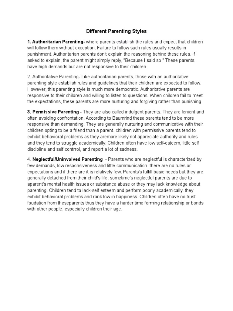 Different Parenting Styles Quizlet Parenting Can Be Divided Into Different Styles.